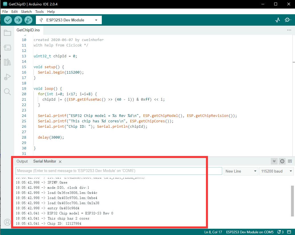 - After successful download, it will automatically enter the serial monitor, you can see the chip output the corresponding information and be prompted to restart after 10S