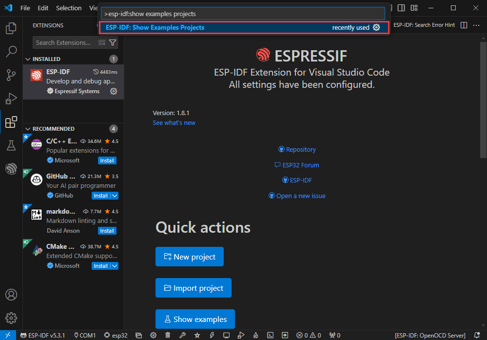 - During this process, the ESP-IDF may take up a lot of CPU resources, so it may cause the system to lag