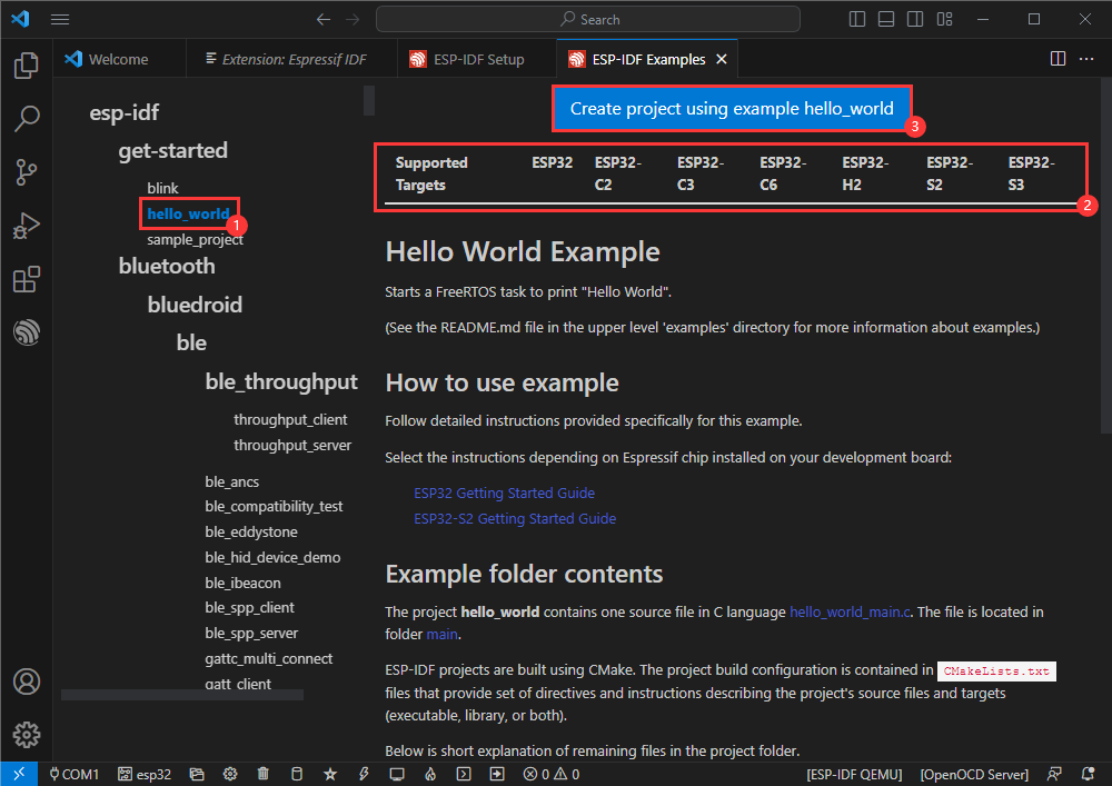 - Select the provided ESP-IDF example and click to select the file (located in the /Demo/ESP-IDF path under demo)