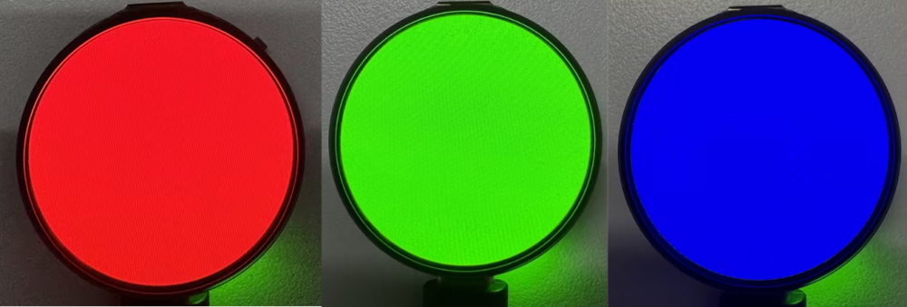 - The display screen transitions through red, green, and blue colors (with a transition interval of 1.5 seconds), as shown in the figure: