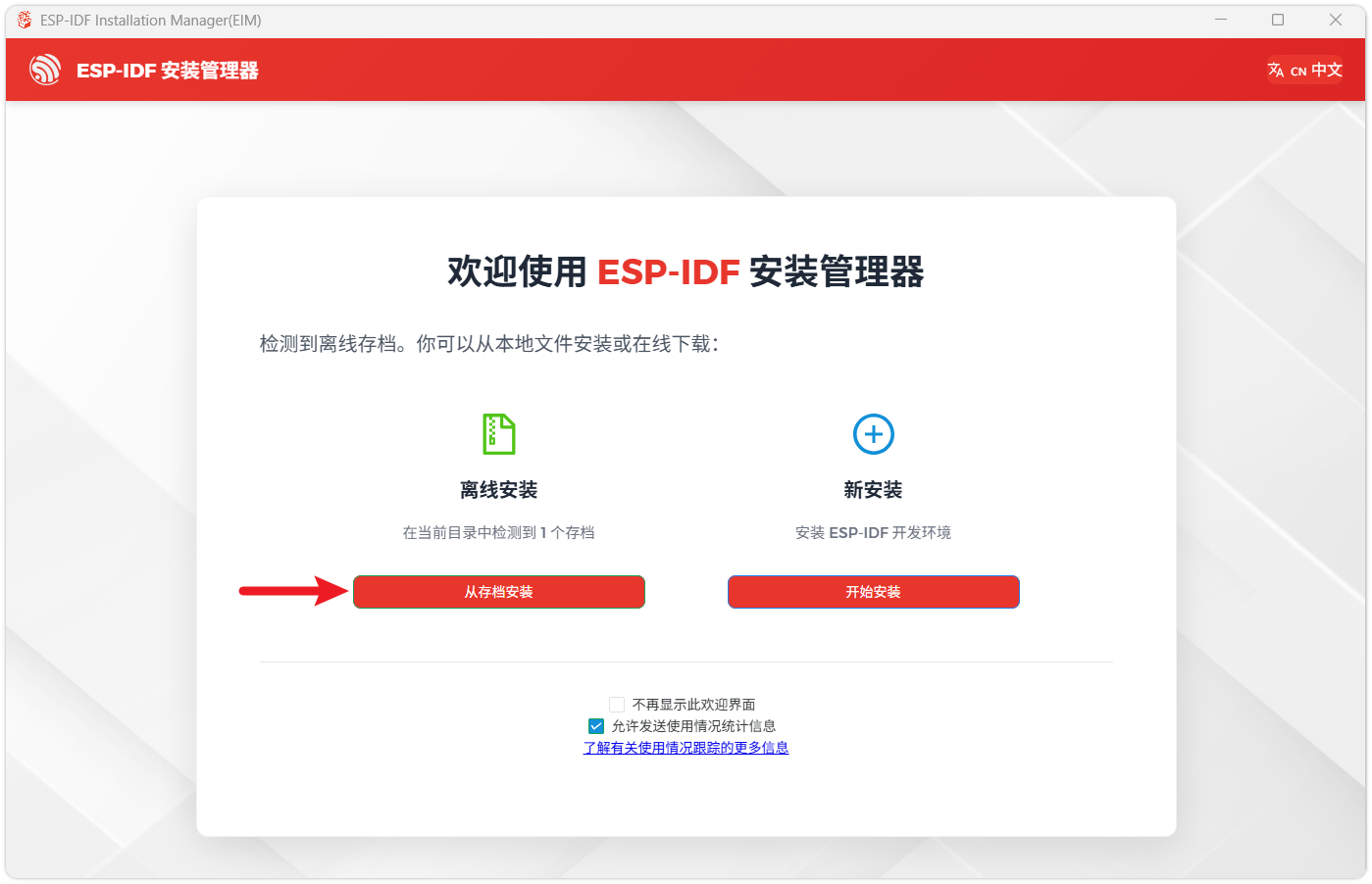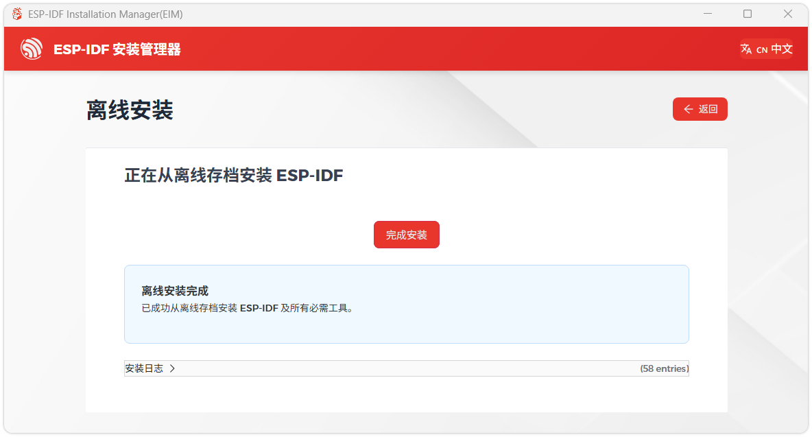 Download the installation manager from the ESP-IDF Installation Manager page. This is Espressif's latest cross-platform installer. The following steps demonstrate how to use its offline installation feature.