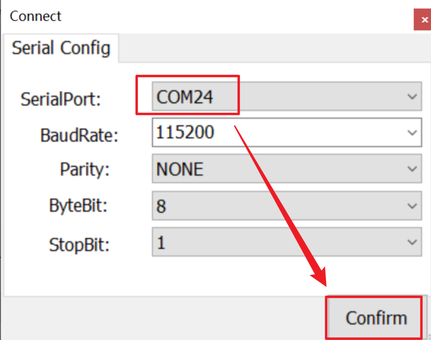 The serial frame format must comply with the specified frame format, otherwise it cannot be transmitted correctly. A serial frame must contain: header, data length, data field, and frame footer. The frame header and footer are customized by the user and consist of 1 byte.