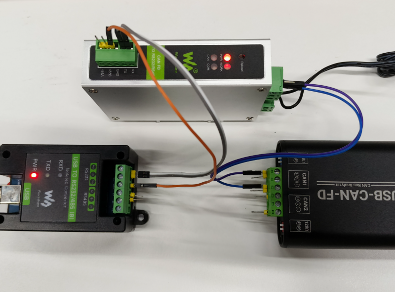 1. The CAN-H of CAN FD TO RS232/RS485 is connected to the CAN1-H of USB-CAN-FD