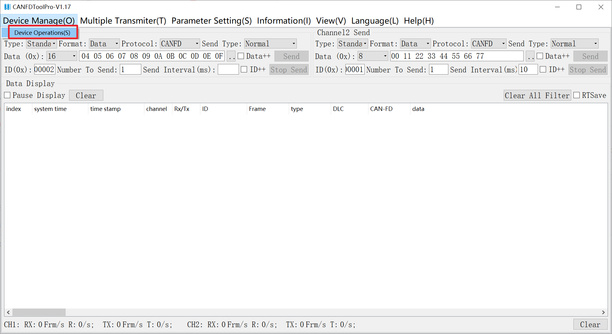 Frame data: In CAN mode, the length is 8 bytes, and in CANFD mode, the length is 64 bytes; if insufficient, it must be padded with 00.