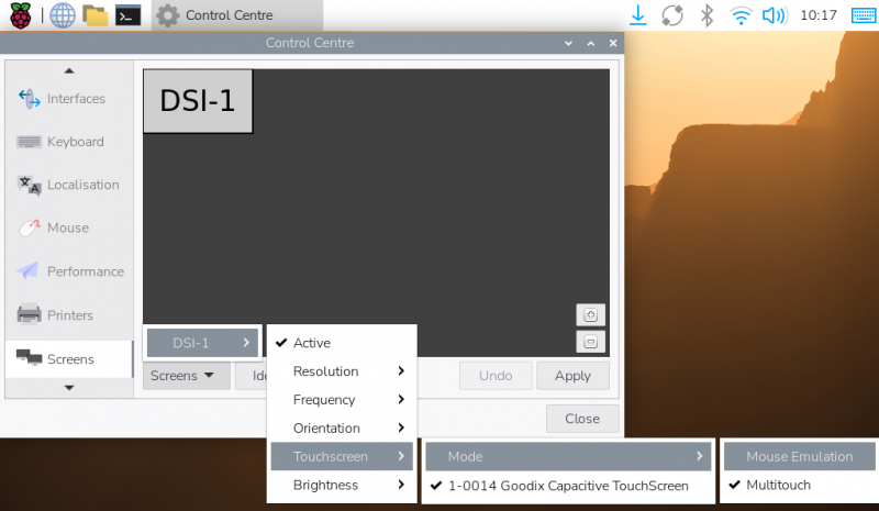 • 2. Go to Screens -> DSI-1 -> Touchscreen and check "10-0014 Goodix Capacitive TouchScreen";