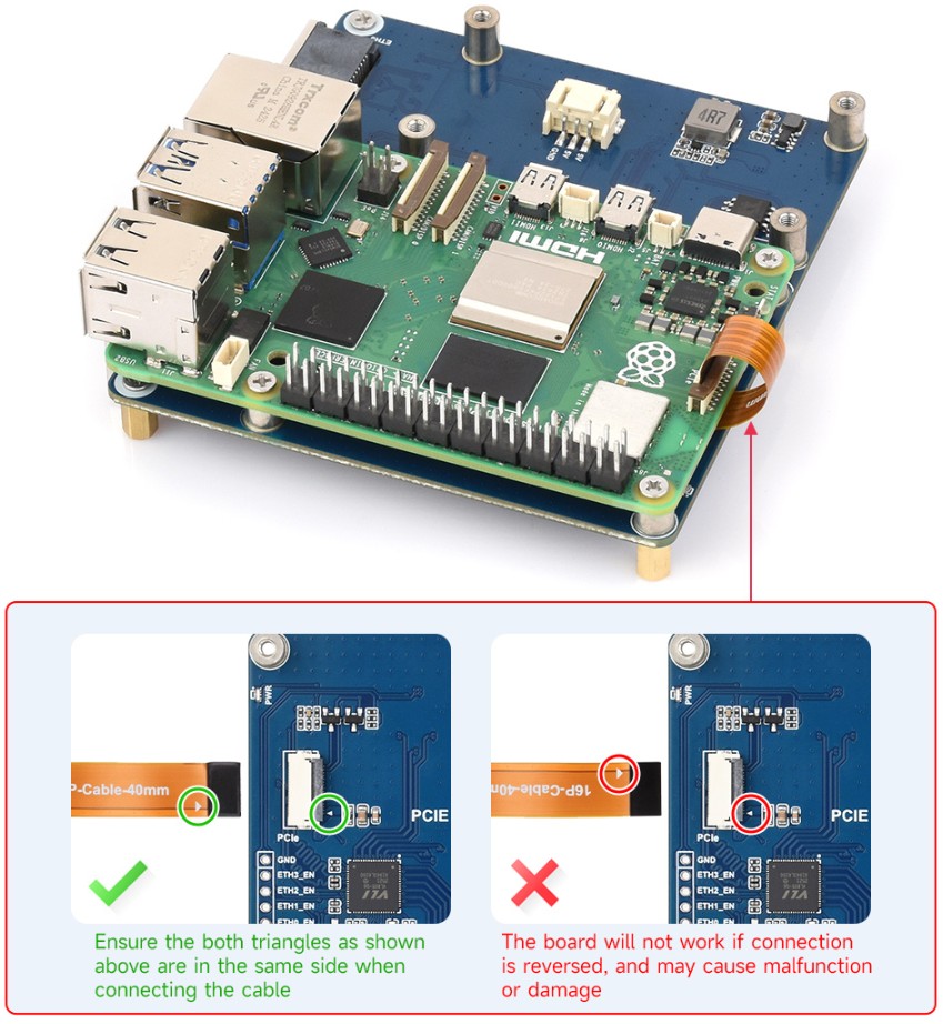 Pay attention to the orientation of the cable. Connect as shown in the diagram: