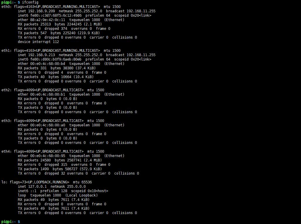 4. Execute ifconfig to confirm that the network card has been recognized