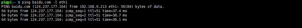 ping baidu.com -I eth1 # -I specifies the network interface
