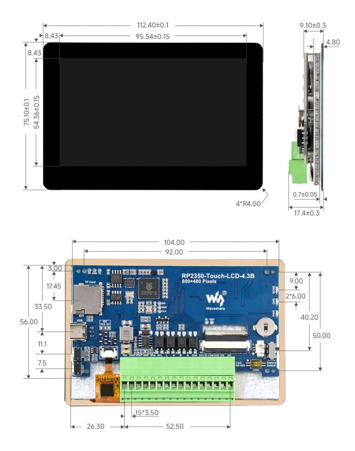 | Resolution | 800(H)RGB x 480(V) | Display Size | 95.54mm x 54.36mm |