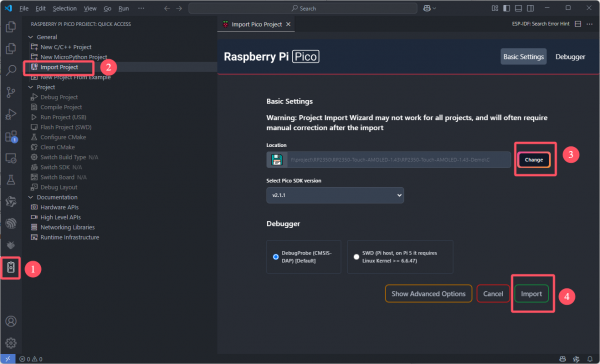 cd RP2350-Touch-LCD-4.3B-Demo/C mkdir build cd build cmake .. make -j8
